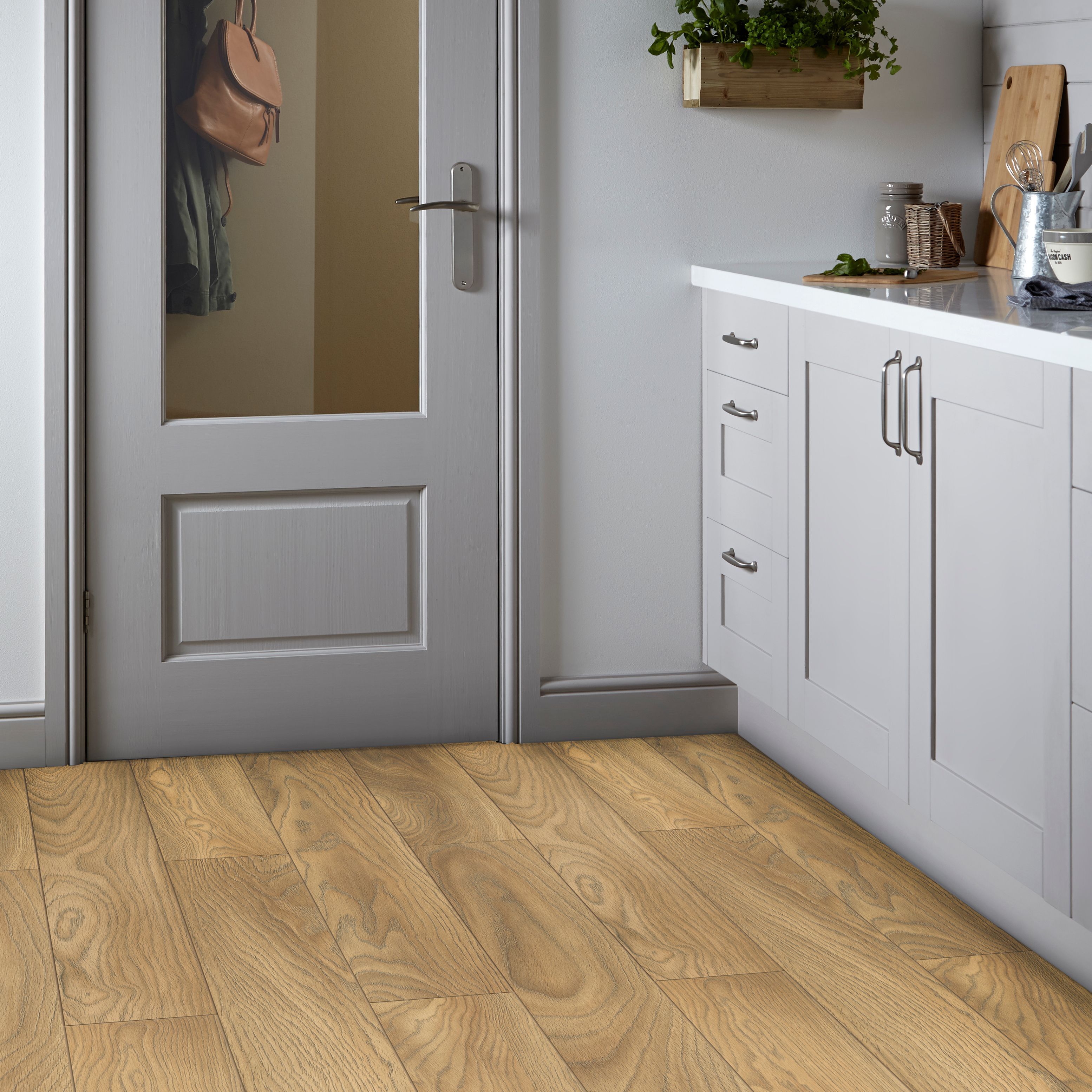 Laminate flooring is a popular option many of our clients consider in similar situations. At oak flooring direct ltd, we specialise in engineered wood flooring, solid wood flooring and laminate flooring.read more. Innovative technologies, such as footfall and impact sound insulation, make these floors extremely quiet and create an exclusive feeling when walking and a pleasant sound experience. Staccato oak parquet effect laminate flooring 1 86 m pack. Our range has a fantastic colour selection covering everything from velvety slate greys to rich and warm wooden tones that beautifully imitate the natural grain of oak, walnut, beech, chestnut and hickory.
